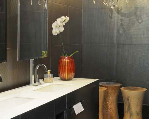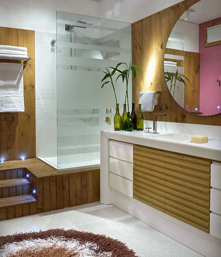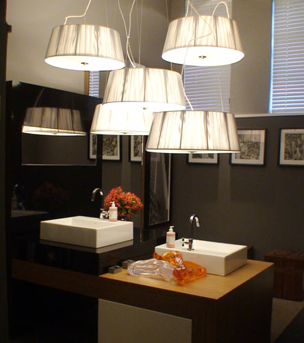 O tema da sustentabilidade foi bastante recorrente na criação dos banheiros das mostras de decoração de 2008. Os arquitetos e decoradores abusaram de materiais como madeira de reflorestamento e pisos ecologicamente corretos. As torneiras e válvulas de descarga ecológicas (que gastam menos água) também foram verdadeiras vedetes, assim como a utilização de leads na iluminação. Nas formas, a grande tendência foram as linhas retas, tanto nas bancadas quando nas cubas e louças. No quesito cores, o preto tomou conta de vários banheiros: grande parte dos profissionais garante que ele voltou com tudo para a decoração. Mas banheiros com cores mais sóbrias ou mais alegres também marcaram presença. Como revestimento, os mais usados foram os clássicos: porcelanato e pastilha. Mas vários profissionais optaram por materiais inusitados, como adesivos de vinil com impermeabilização de verniz e vidro com estampas coloridas. Confira abaixo todos os banheiros apresentados em mostras de decoração em 2008 e inspire-se para sua próxima reforma. Ao final das legendas de cada foto, há um sinal de +: clique sobre ele para ir para a cobertura completa da mostra de decoração da qual o ambiente faz parte. Aproveite para acessar todos os banheiros do Casa.com.br ou passear por nossas galerias de fotos com vários ambientes. E se quiser saber mais sobre as mostras de decoração, acesse todas as coberturas.