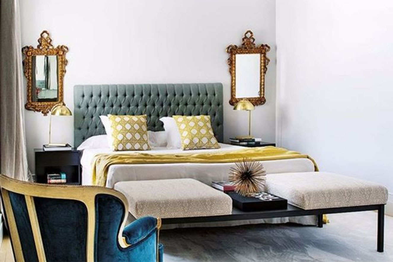 Uma forma de aumentar um ambiente é distribuindo espelhos pelo ambiente. Um bom espelho funciona bem nesse espaço – vale a pena, inclusive, checar o feng shui para saber se a é ideia boa também para as energias do quarto.