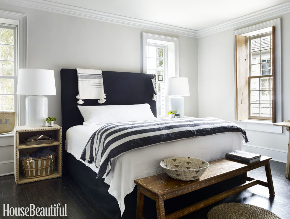 A designer Elizabeth Mayhew dá uma sugestão prática: basear a cor das paredes no tom dos móveis maiores do ambiente. O truque serve para camuflar essas peças no espaço, como acontece no quarto cinza da foto. A cabeceira da cama e as poltronas tiveram o cinza copiado nas paredes, ficando mais discretos no plano de fundo.