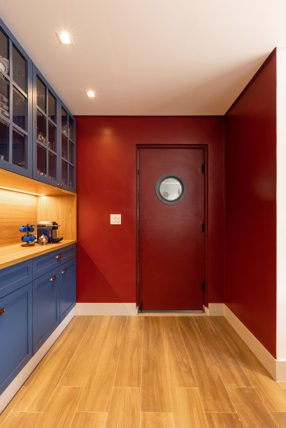 “Um dos grandes destaques vai para o porcelanato que usamos no piso: a ideia era trazer o aconchego e o rústico da madeira, porém com o material adequado para uma cozinha. Outro destaque vai para a bancada de porcelanato que se desdobra e vira uma mesa, solução que traz continuidade e leveza para qualquer ambiente”, finalizam as profissionais.