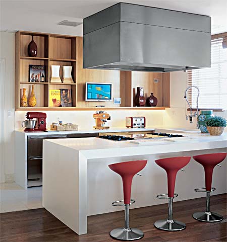 Acolhedora, quente e receptiva, a cozinha pode ser considerada o coração da casa. Para ampliar os seus domínios, ela vem ganhando cada vez mais espaço: abaixo as paredes e salve a integração dos ambientes! O prazer de preparar as refeições enquanto se recebem os amigos é ainda maior quando a cozinha conta com uma ilha, que vira o palco para o cozinheiro e sua platéia. Inspire-se em nossas 26 idéias para cozinha com ilha e inclua este sonho em seu projeto.
