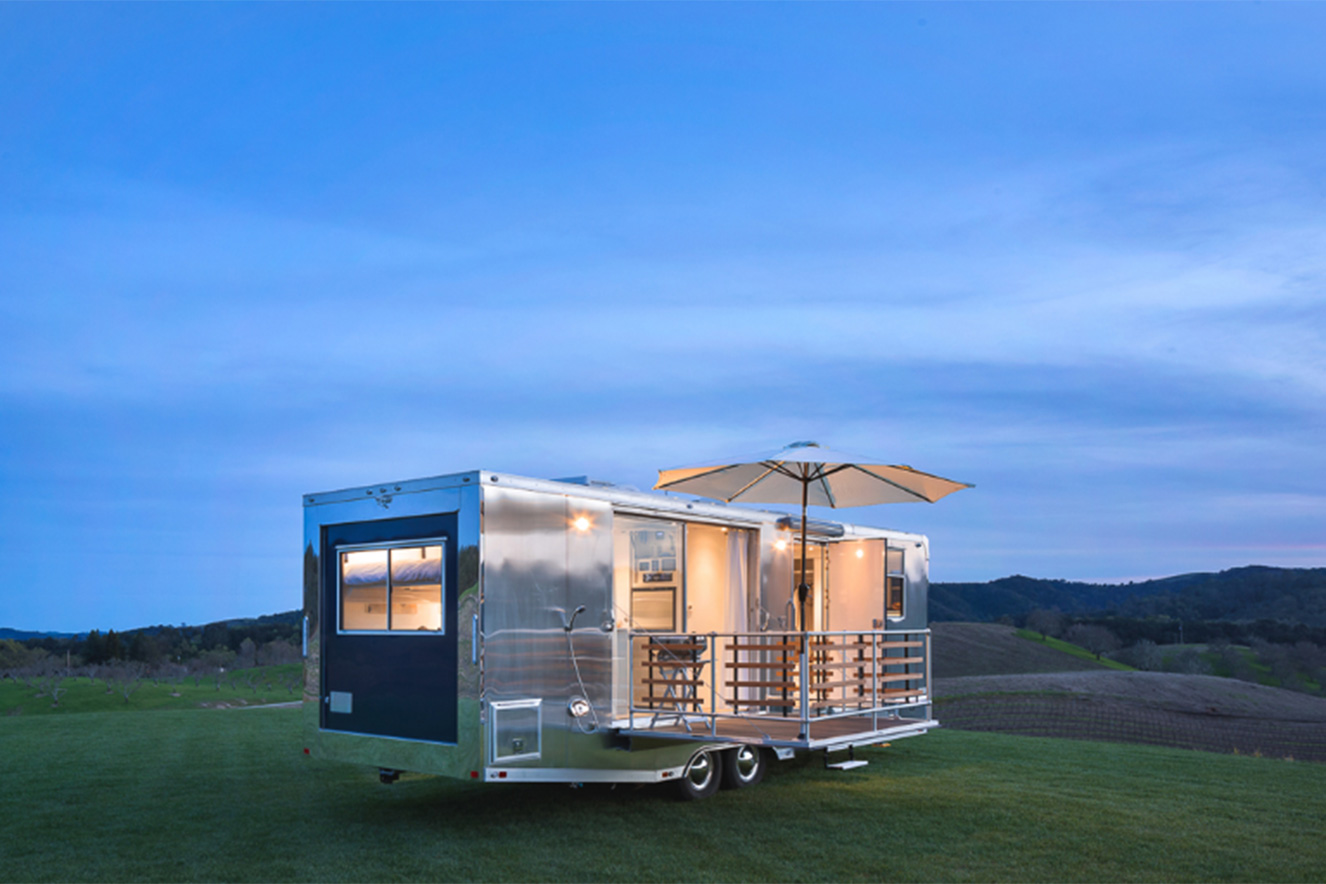 A startup Living Vehicle criou uma versão rebocável, inteira de alumínio, e que tem um pouco menos de 20 metros quadrados de área útil. Porém, apesar de pequeno, o ambiente foi criado para comportar seus passageiros de uma forma bastante confortável.