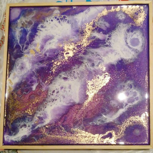 Linda, que também costuma pintar como passatempo, decidiu dar à filha alguns de seus materiais de arte.”Eu dei a tela e as tintas e falei: ‘Vá fazer alguma coisa'”. Cassie então voltou com sua primeira pintura, que deixou a mãe orgulhosa e impressionada. A garotinha usa uma combinação de tinta acrílica com água, resina e brilho sobre tela para criar suas pinturas, que faz apenas com um garfo, espeto e suas mãos.