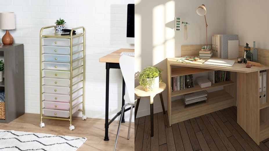 Como a área de estudos não será usada todos os dias, muitas vezes não será possível reservar um cômodo só para ela. Por isso, defina um cantinho e use móveis complementares que não ocupem tanto espaço. Uma ótima solução são carrinhos de armazenamento com rodinhas.