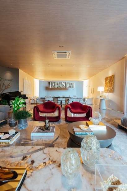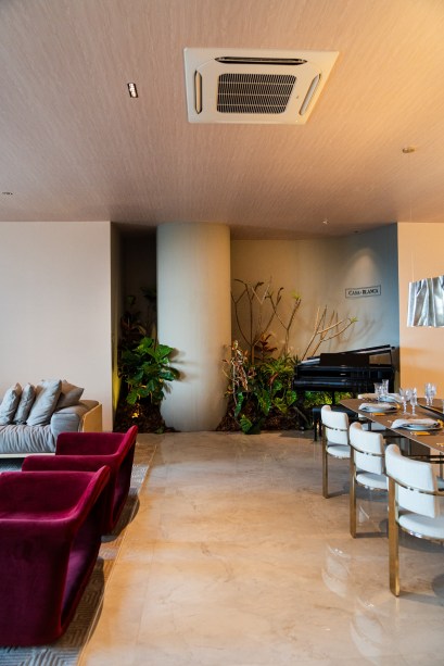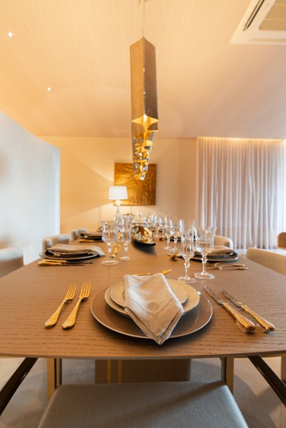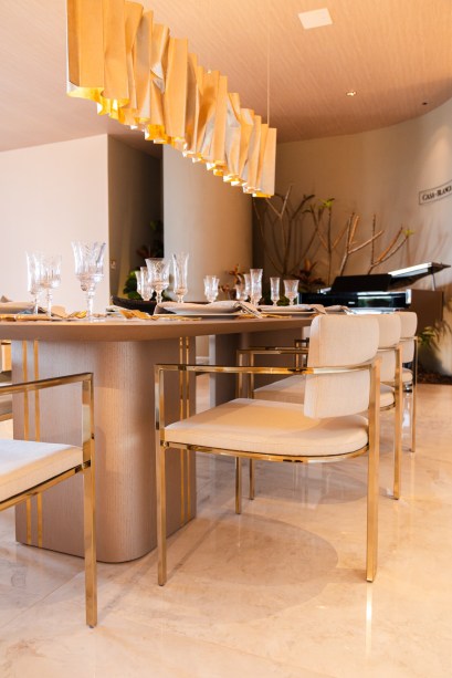Destaque também para o papel de parede importado com estampa animal print em todo o lavabo, o belo lustre da sala de jantar e o grande piano. O ambiente, realizado em parceria com a Casa Blanca Decorações, enaltece as possibilidades da loja, reconhecida em Brasília por sua curadoria especial e vasta. “Temos papéis de paredes exclusivos que são verdadeiras joias no ambiente e atuam como um revestimento em si, como um feito da própria madrepérola, mobiliário com peças de design clean, levemente arredondadas e um mix do contemporâneo com toque clássico”, finaliza a arquiteta.