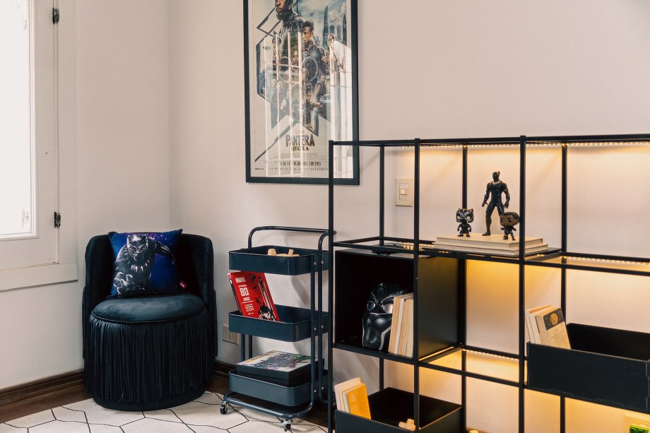 Quarto com decoração inspirada no filme Pantera Negra: Wakanda Para Sempre