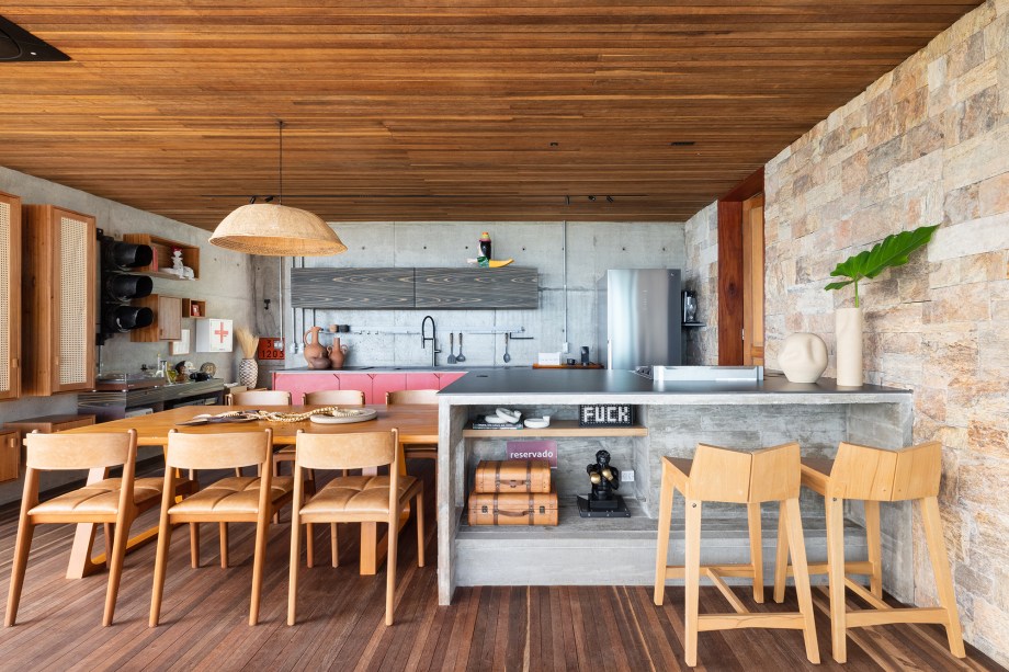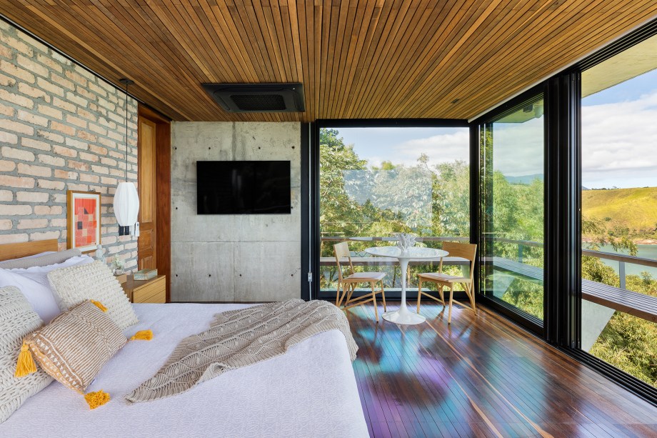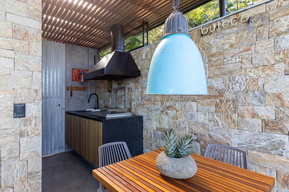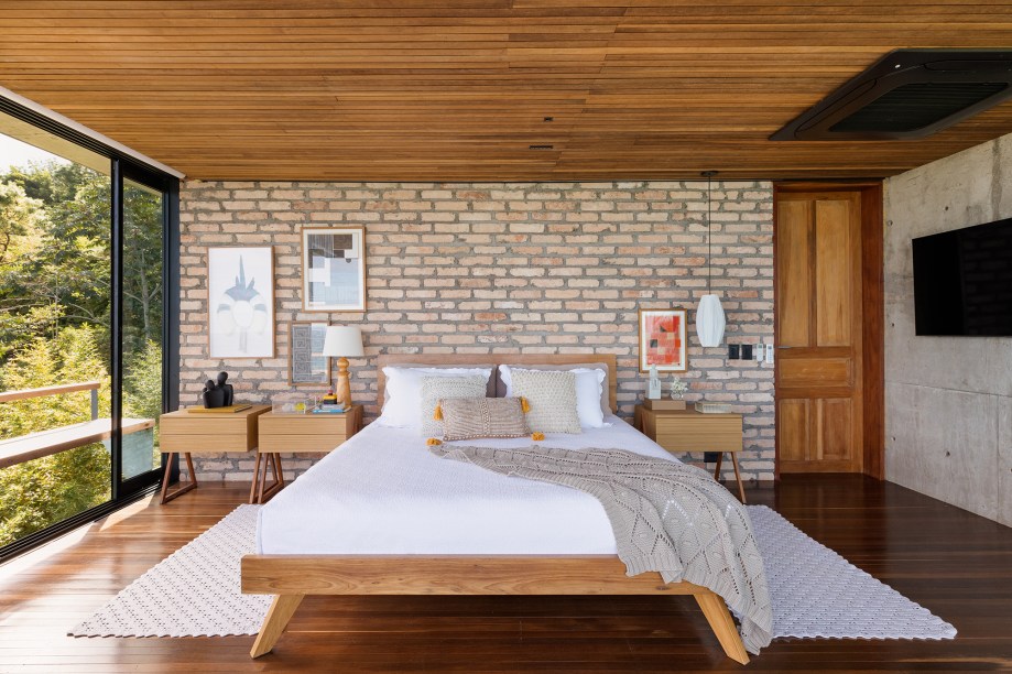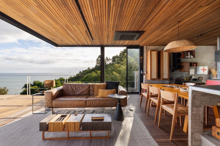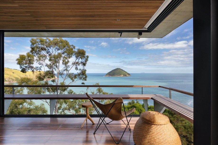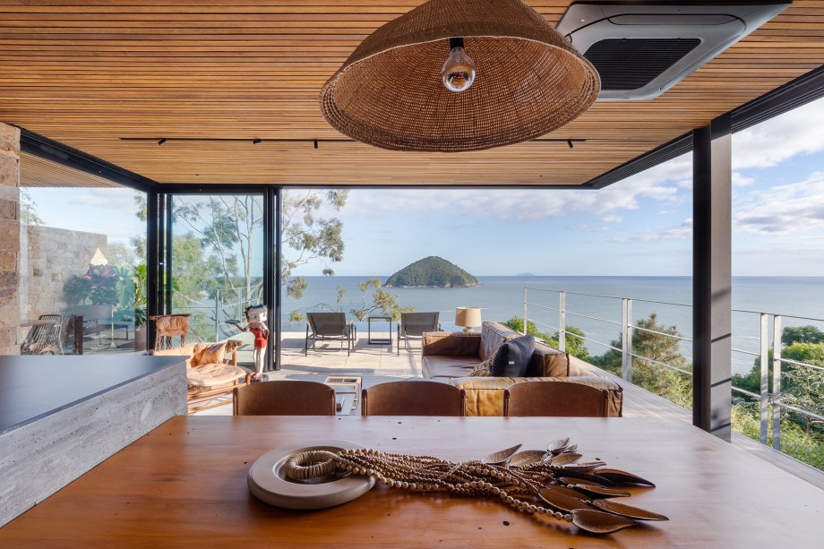 O resultado é uma construção suspensa de concreto aparente, com alma caiçara, imersa em meio ao verde. A arquitetura contemporânea de linhas retas e grandes vãos privilegia a vista e o predomínio de materiais naturais como a pedra, a madeira, o aço e o cimento dialoga com a Mata Atlântica do entorno.