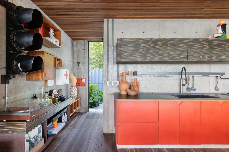 O programa arquitetônico partiu de uma casa para um casal: no pavimento térreo, estão a sala de estar, cozinha integrada, lavabo, área de churrasqueira, deck e piscina. No andar de cima, há apenas uma generosa suíte com acesso para o solarium. A ideia dos moradores é também locar o imóvel para hóspedes.
