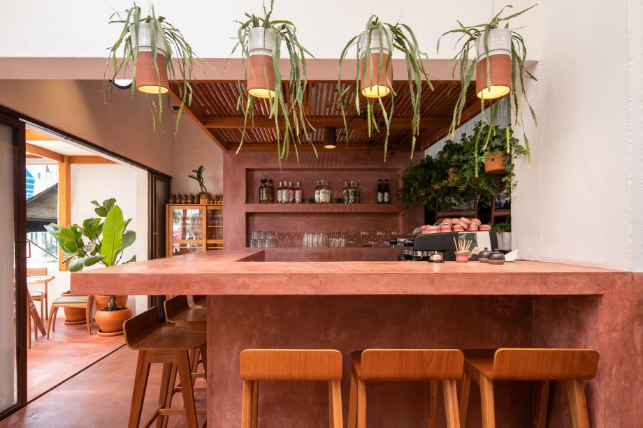 Assim, a relação estabelecida entre a arquitetura e a natureza foi zelada durante todo o processo de criação, sendo considerada em todas as decisões projetuais, até mesmo na concepção das luminárias pendentes, produzidas em conjunto com uma ceramista, que funcionam como vasos suspensos.