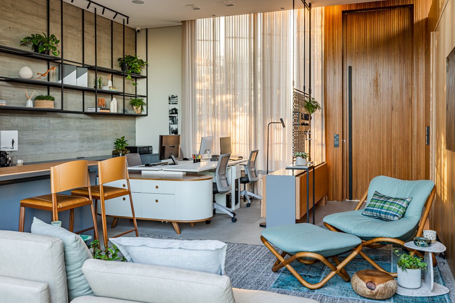 Para seu local de trabalho, a arquiteta Amanda Heineck, do Acanto Arquitetura, criou em uma área de 85 m² espaços de estar, trabalhar e receber