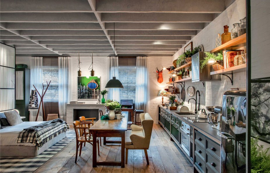 - com decoração industrial (que se remete aos galpões nova iorquinos).