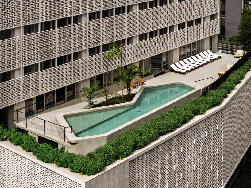 Retrofit de prédio no centro de SP vence Monocle Design Awards 2024. Projeto de Metro Arquitetos. Na foto, fachada do prédio com cobogós.