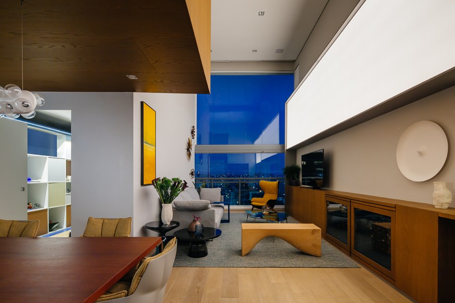 4 caixas cromáticas criam funções em apê com pé-direito duplo