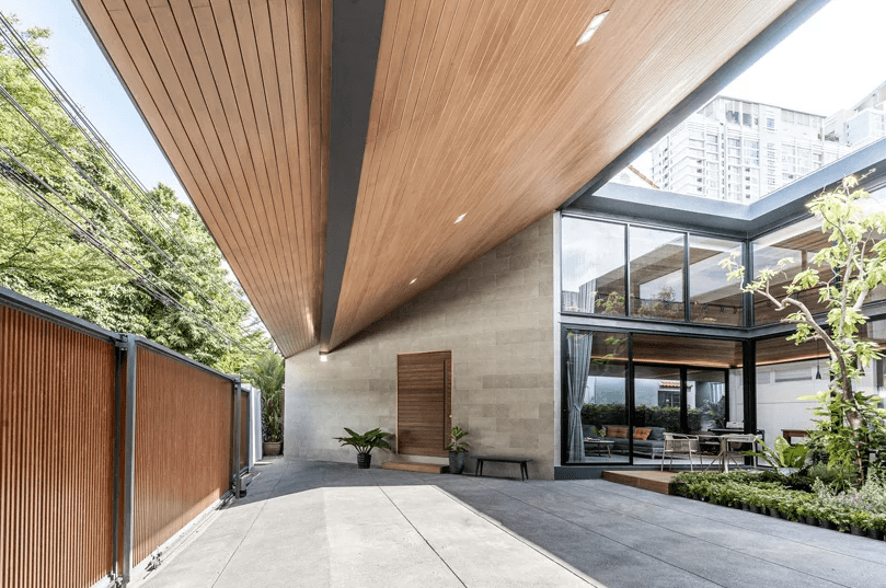 O escritório de arquitetura tailandês Looklen Architects resolveu inovar na arquitetura com a construção da Roof House (em português, “Casa do Telhado”), já decifrada pelo nome: o imóvel apresenta um teto atípico, vazado no centro.
