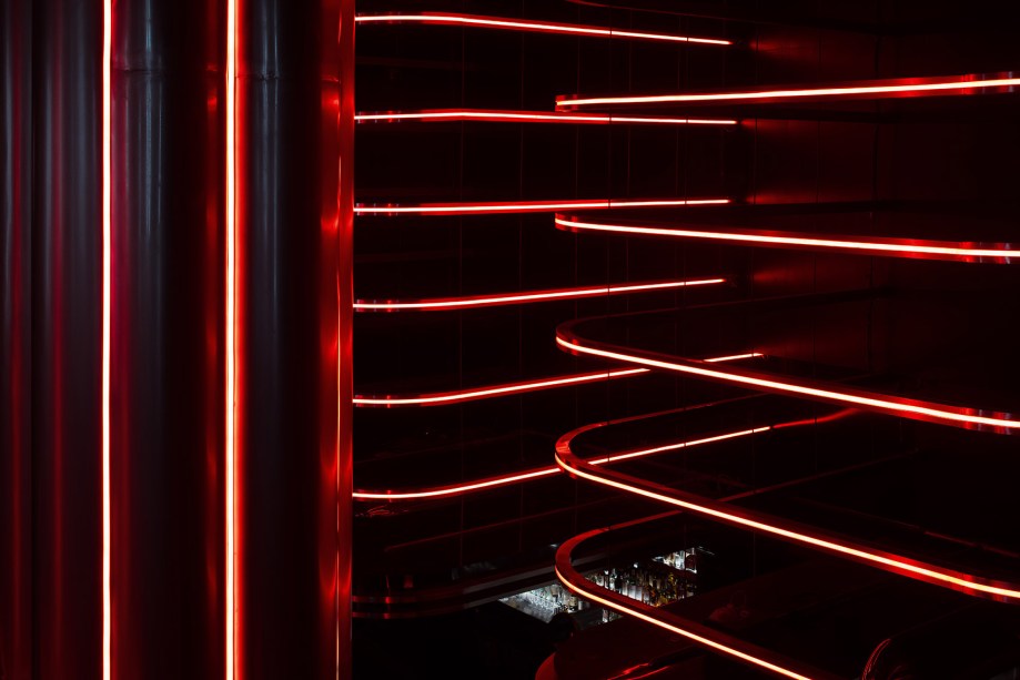 O balcão do bar é recuado para dar lugar ao palco, com vista que valoriza as pessoas e a música. Os banheiros apresentam uma estética retrô distinta da tendência, servindo de ‘bastidores’ para o descanso das pessoas.