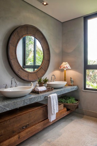 O segundo passo é a escolha dos materiais e revestimentos. Um ponto comum na maioria das casas de campo é a opção por materiais naturais para se integrar ainda mais ao ambiente externo. Madeiras e pedras são bem vindas, assim como o concreto armado e o cimento queimado.