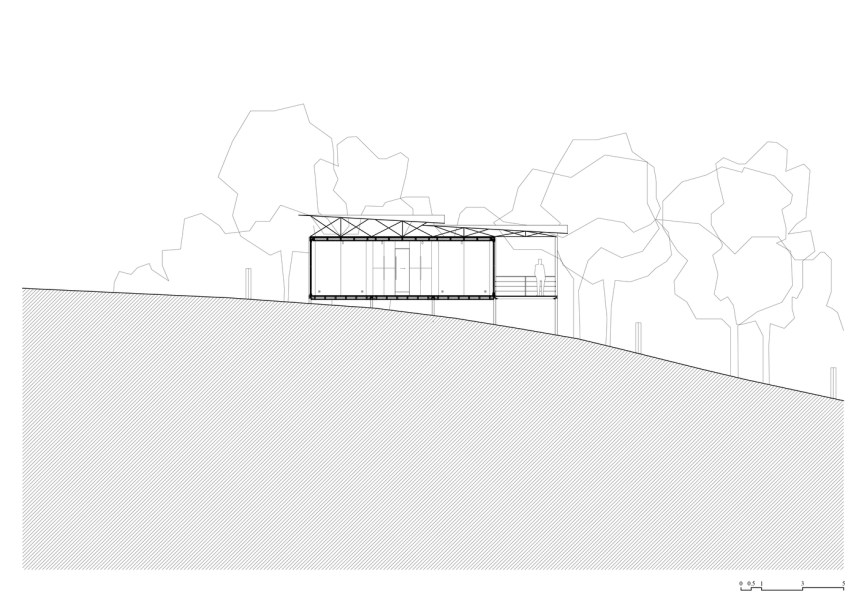 Durante as primeiras etapas do projeto não se sabia onde o edifício seria construído. A única informação que o ŠA atelier sabia era sobre as condições climáticas. Como resultado, o teto da cabine foi projetado para parecer que está flutuando no ar. Além de proteger a estrutura do calor do sol, ele tem uma forma que coleta a água da chuva, despejando-a de um plano para outro e exibindo seu escoamento.