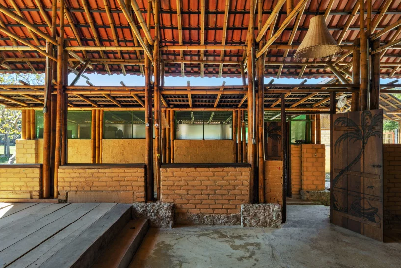 Construído com bambu de origem local, este complexo no litoral paulista serve como ponto focal de uma comunidade costeira. Concebido como uma iniciativa social, o projeto foi desenvolvido juntamente com os moradores da comunidade de baixa renda de Camburi – uma vila localizada perto da cidade de Ubatuba.