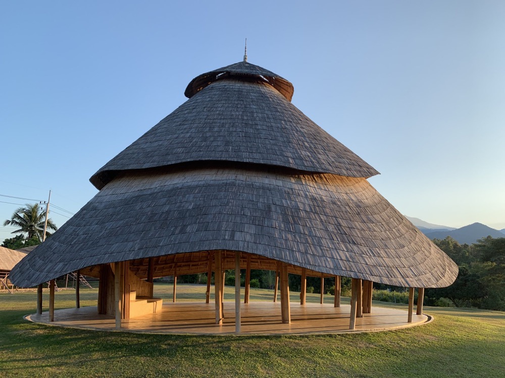 Localizada no topo de uma colina, ao norte de Chiangmai, na Tailândia, esta construção de bambu chama a atenção na paisagem. Trata-se de uma catedral de meditação, assinada pelo escritório local Chiangmai Life Architects. Pensado para se integrar harmoniosamente com a natureza e parecendo emergir do solo, o lugar foi estrategicamente instalado para que os frequentadores pudessem desfrutar da vista para as montanhas.