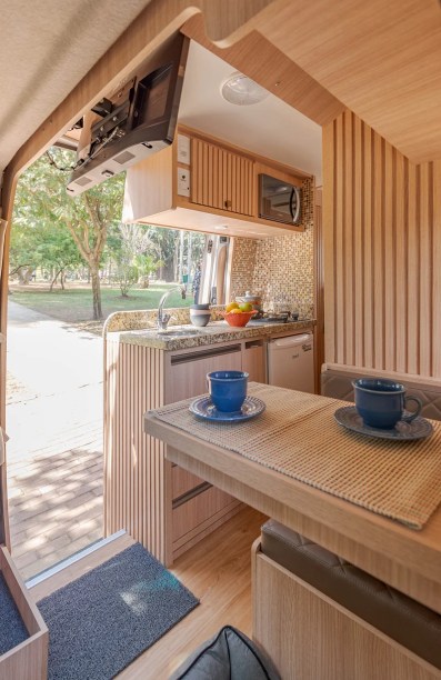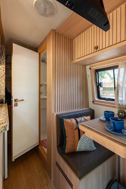 Van é transformada em motorhome após reforma e muita marcenaria sob medida
