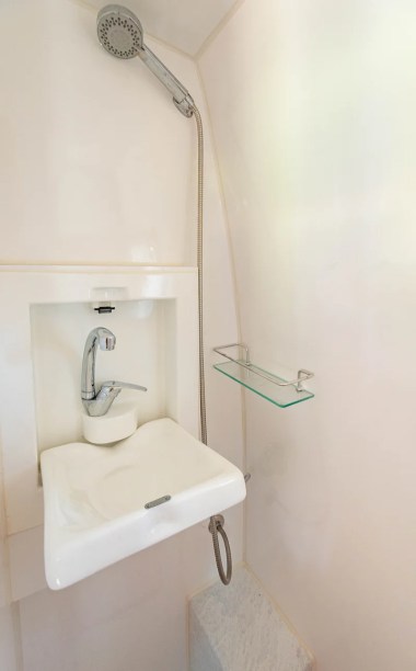 Iluminação e ventilação dão um show, e as soluções como a cuba dobrável na área do box, por exemplo, ficaram ótimas. Ainda tem a mesa com regulagem de altura para servir para refeições, TV, e serve de apoio para o que mais precisar!