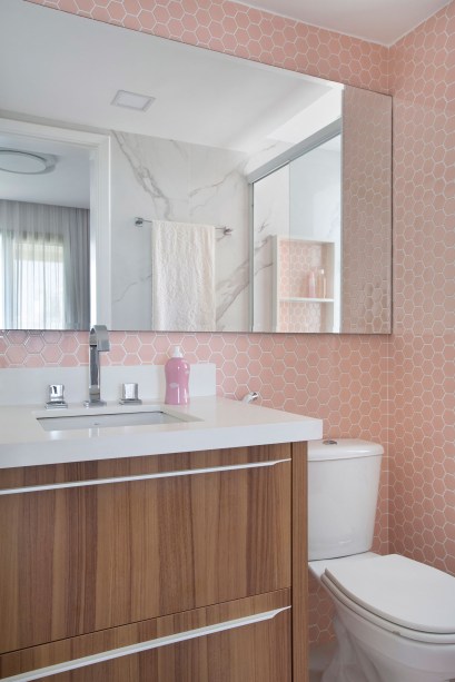 Na lista de pedidos dos moradores tinha banheiro espaçoso para o casal, com penteadeira para ela e banheiro escuro no escritório, para ser o banheiro apenas dele.