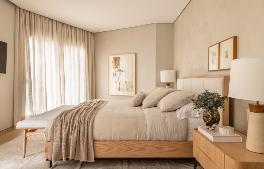 Já nos quartos, predominam tons claros e neutros tanto no mobiliário quanto nos adereços. O objetivo era criar locais de refúgio com uma atmosfera de paz e serenidade. O closet da suíte master foi refeito para atender às novas demandas de espaço.