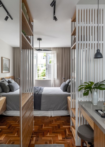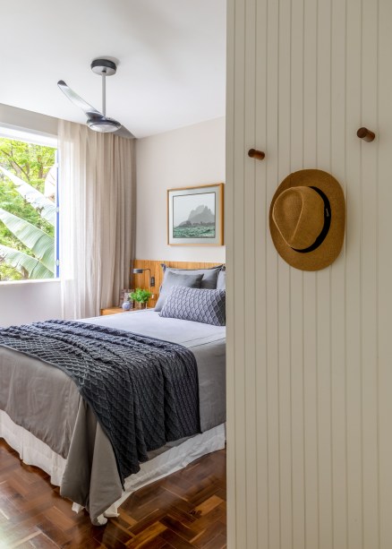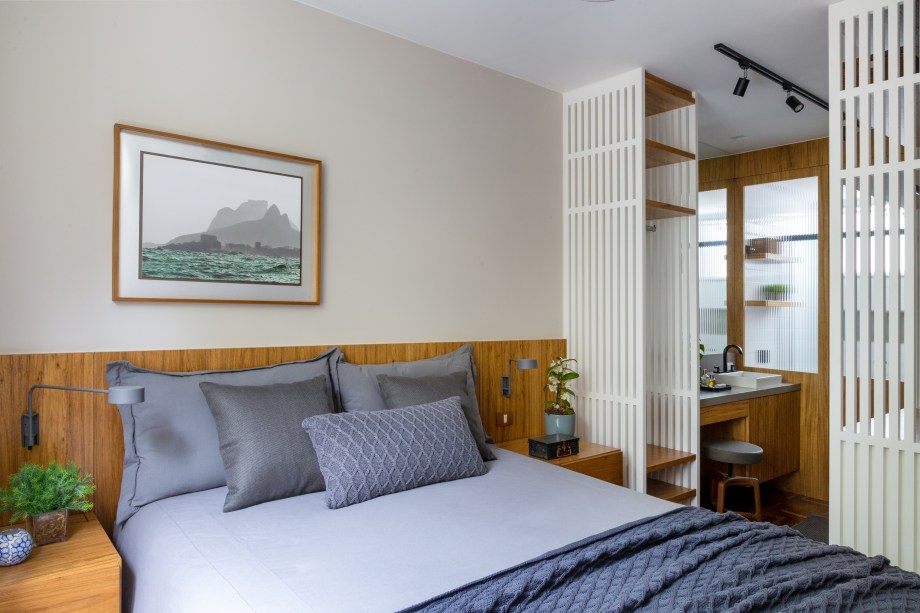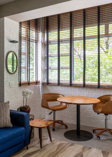 “Originalmente, a cozinha e a sala eram separadas. Por ser um imóvel compacto, usado como um espaço de convivência nas férias e para receber os amigos e familiares, optamos por integrar os ambientes, criando um living amplo, com circulação mais fluida e funcional”, conta Camila.