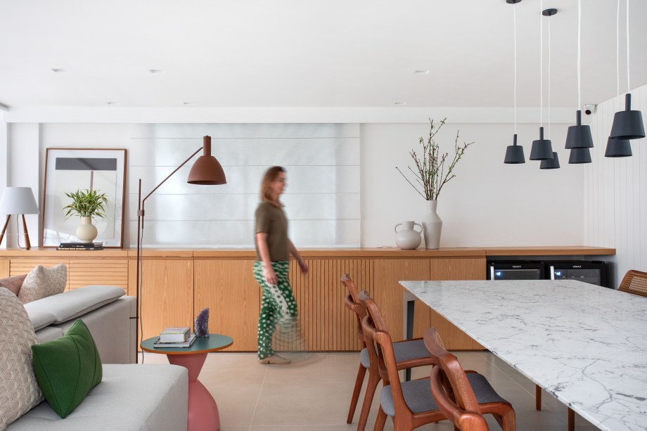 “Com uma abordagem contemporânea e ao mesmo tempo acolhedora, trabalhamos uma estética confortável e atemporal, combinando materiais quentes com linhas limpas, paletas suaves e detalhes finos”, explica a arquiteta.