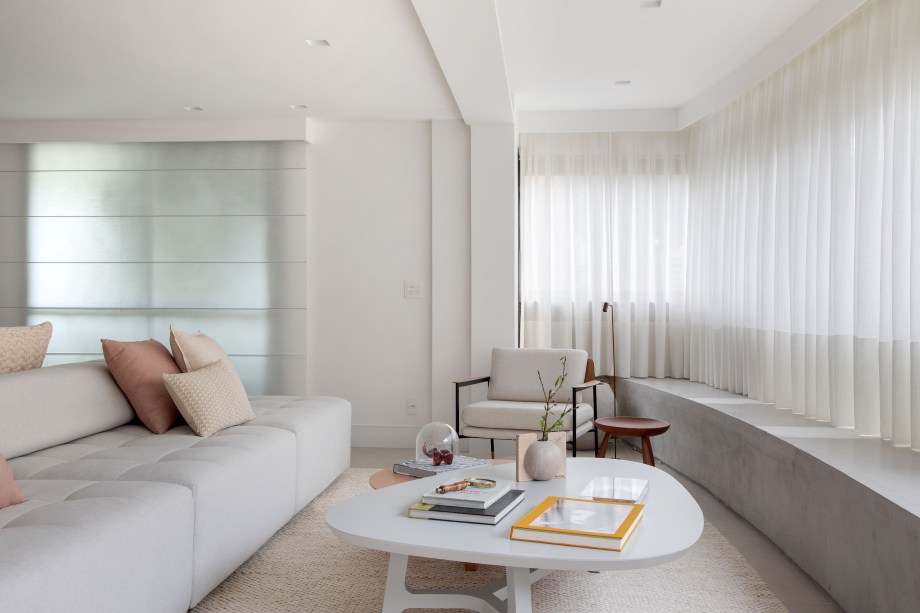 O conceito do projeto buscou a máxima integração dos espaços e adotou uma paleta de cores em tons predominantemente claros para criar uma atmosfera contemporânea, leve, despojada e acolhedora.