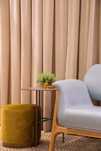 “Utilizamos tonalidades neutras e confortáveis. Nas paredes, optamos pela papel picado da Suvinil que dá um toque aveludado e é um pouco mais fechada em relação ao branco do teto e deixa com uma atmosfera mais intimista. Realçamos também pontos discretos de cores nos detalhes, como adornos e almofadas”, salientam.