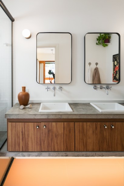 O programa do térreo passou a abrigar cozinha, salas de estar e jantar, escritório, lavabo, serviços e área de lazer (com churrasqueira e redário), que ocupam agora o pátio/jardim nos fundos do terreno. Já as suítes ocupam o pavimento superior.