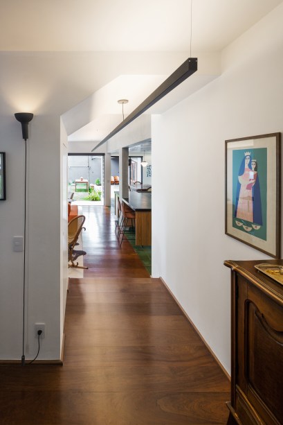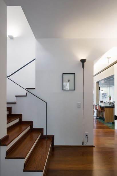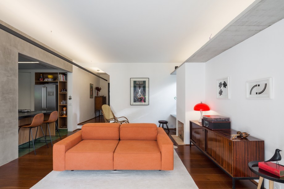 As demolições internas permitiram dar unidade de espaço e luz, além de proporcionar novas conexões visuais entre o ambiente interno e o jardim nos fundos, que anteriormente contava com uma piscina que ocupava quase toda a área externa.