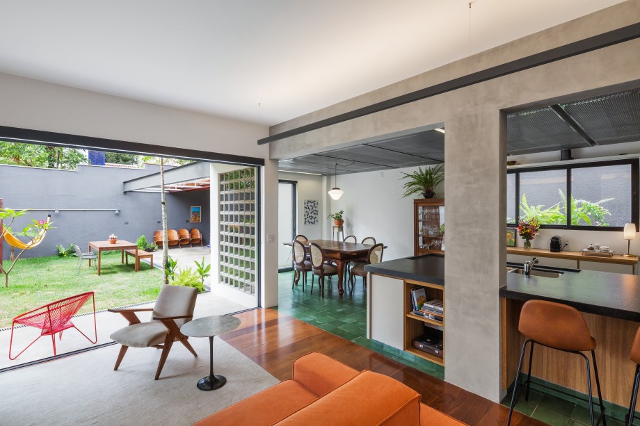 Casa de vila de 225 m² recebe integração, luz natural e conexão com jardim
