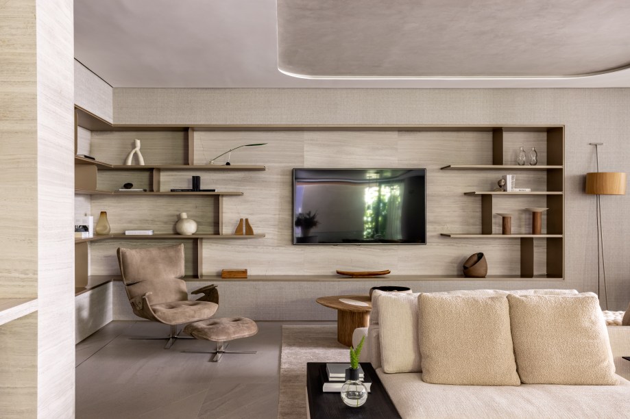 Focado em conforto e sofisticação, o décor planejado pelo LW Design é repleto de tons neutros e materiais naturais
