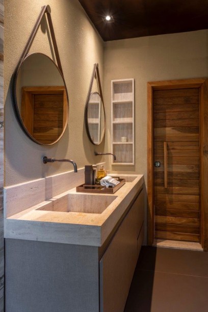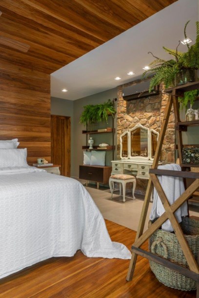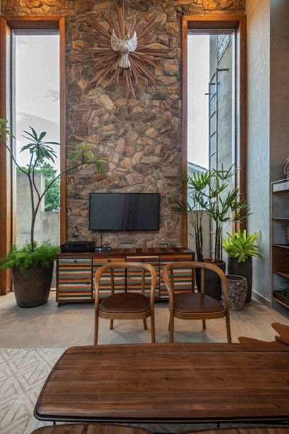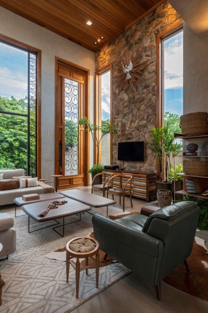 Casa de 365 m² tem estilo rústico, muita madeira e pedras naturais