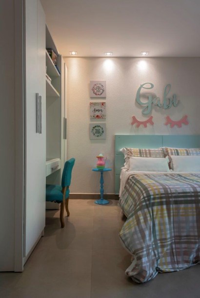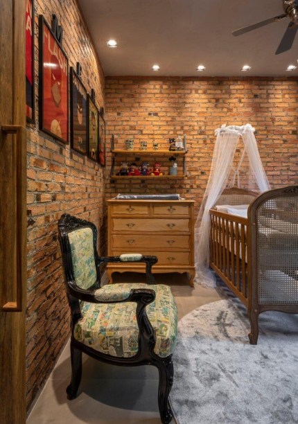 Também foram utilizadas muitas peças de garimpo e móveis com um estilo mais vintage, como uma penteadeira, mesa e cadeira, que vieram de suas famílias.