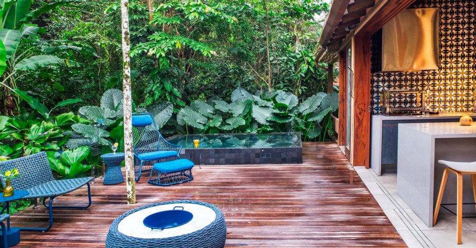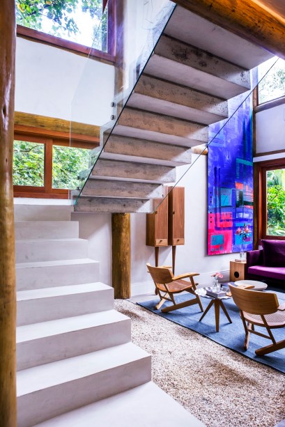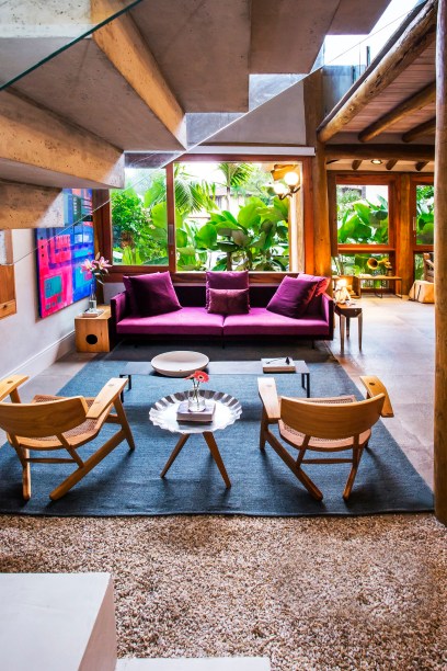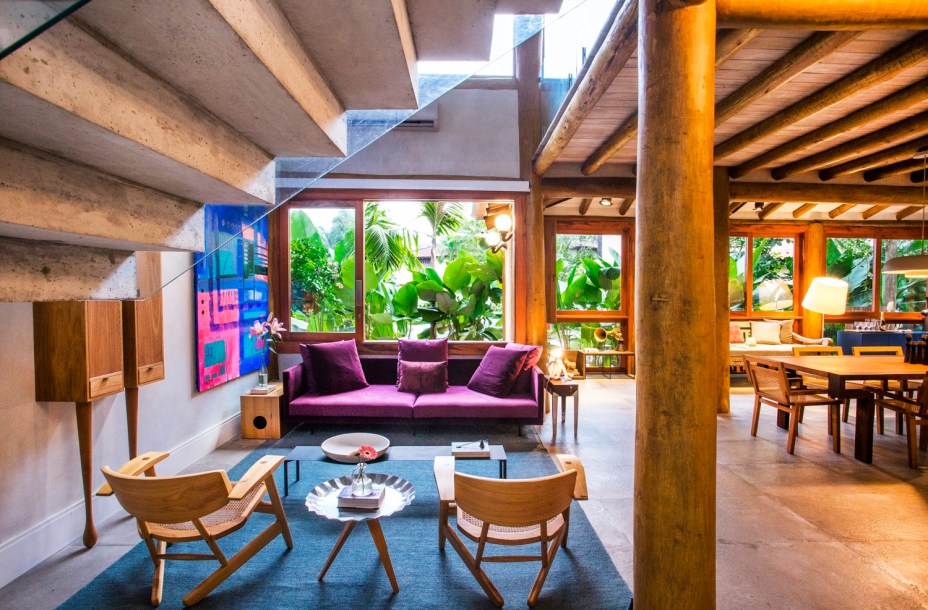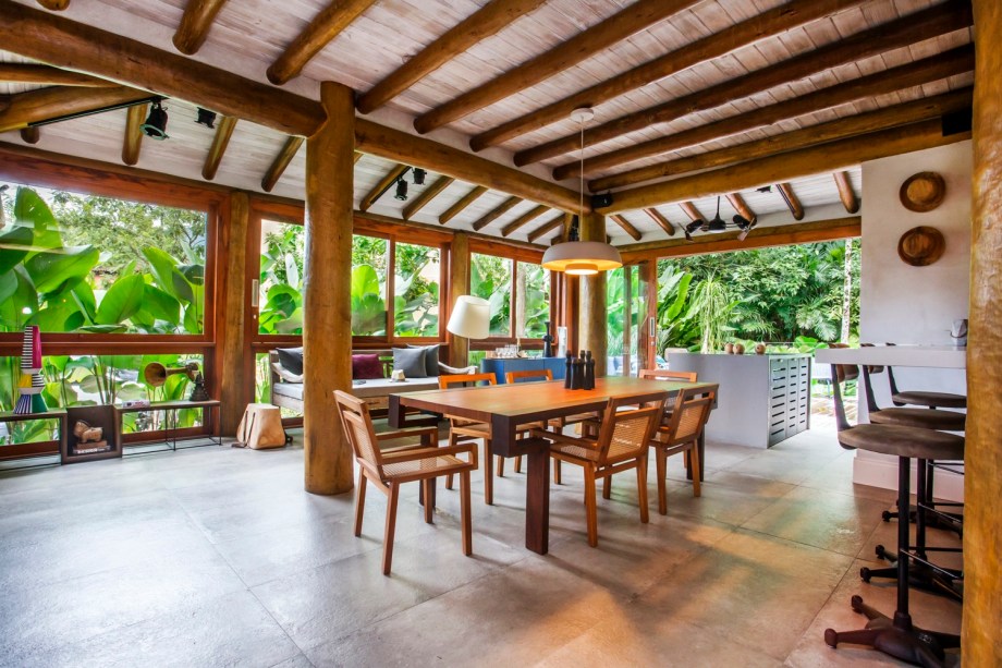 A arquitetura erguida em estrutura de eucalipto tratado passou por uma reforma para se adaptar aos novos moradores