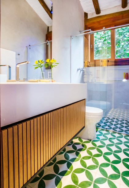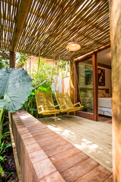 A sustentabilidade também norteou o projeto. Os arquitetos buscaram fazer escolhas que causassem o menor impacto ambiental possível. As madeiras usadas são todas de reflorestamento, por exemplo, e o piso dos quartos, de eucalipto tratado, foram aproveitados.