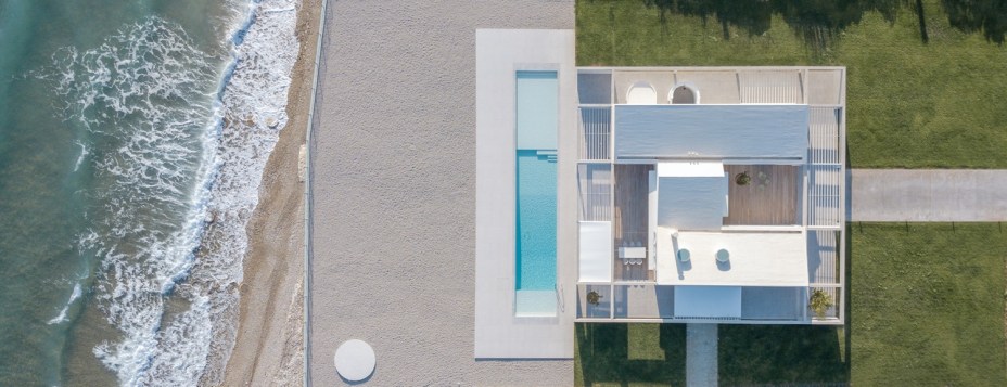 Localizada ao norte da região do Peloponeso, na Grécia, esta casa térrea foi pensada como uma tela em branco para que os moradores imprimissem ali sua história naquele lugar. Para isso, os arquitetos Giannis Douridas e Vera Kanellopoulou, do escritório RCTECH, desenharam uma arquitetura elementar, com formas geométricas simples, composta por um volume inclinado, rodeado por uma pérgula de concreto aparente e uma piscina paralela à orla da praia. Uma verdadeira ode ao modernismo.