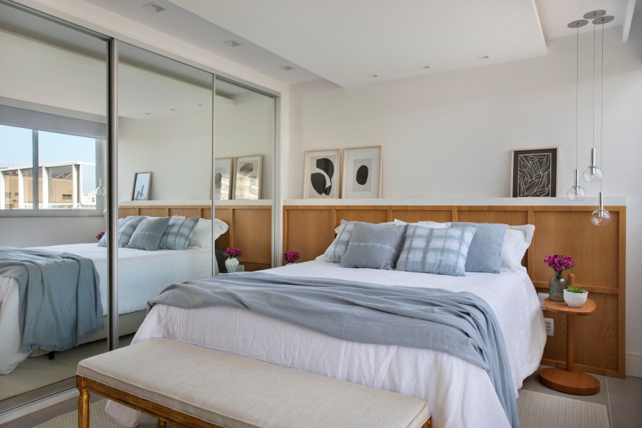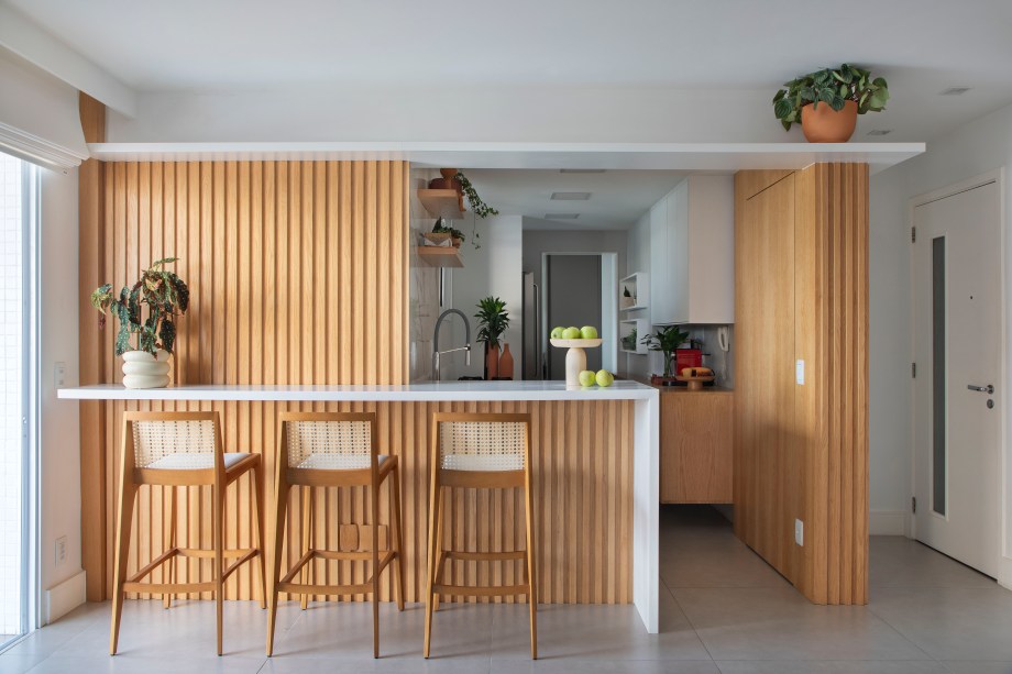Além de integrar a cozinha com a sala, a arquiteta revela ainda que conseguiu ampliou a suíte do casal incorporando a antiga academia de ginástica, que era vizinha ao cômodo.