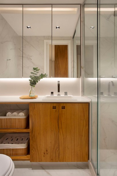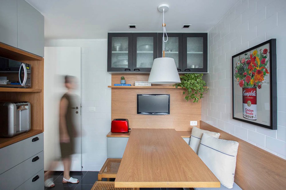 No que se refere à decoração, foram aproveitados diversos itens do apartamento anterior, como sofá, poltronas, mesa de jantar, alguns quadros e objetos. “De forma geral, buscamos levar para todos os ambientes conforto e aconchego através de um projeto leve, que valoriza a iluminação, materiais e texturas naturais, além de ser funcional para o novo dia a dia dos moradores”, conta Ana Luisa.