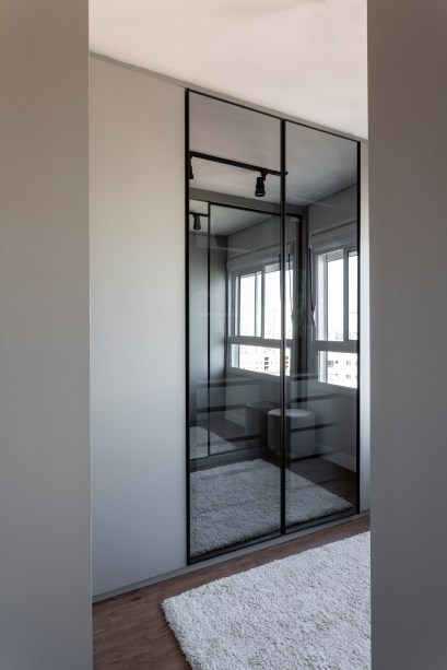 “Originalmente, o apartamento possuía 3 dormitórios e as moradoras já tinham em mente remover o terceiro para ganhar o cantinho do vinho/café. Porém, no momento do briefing, notamos que elas precisavam de um closet espaçoso e não tinham necessidade de um quarto de hóspedes“, contam os arquitetos.