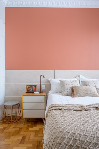 Nos dois quartos a principal mudança foi a retirada da parede entre eles para criar um closet no quarto principal. O outro espaço converteu-se em home office e ateliê para as criações de Paula.