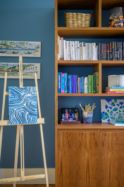 Nos dois quartos a principal mudança foi a retirada da parede entre eles para criar um closet no quarto principal. O outro espaço converteu-se em home office e ateliê para as criações de Paula.