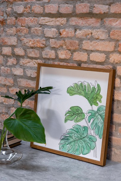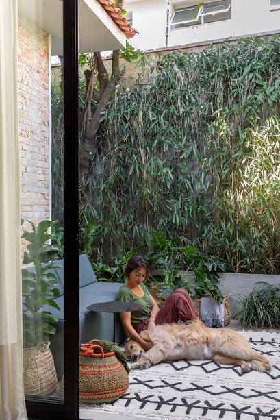 Buscando manter a rusticidade dos materiais, ela optou pelo uso de concreto aparente na laje. Antes abandonada, a parede verde foi reativada com novas plantas e, para facilitar o cuidado, foi instalada uma irrigação automática. Ao lado dela, Beatriz projetou um canto de leitura para pausas no trabalho.