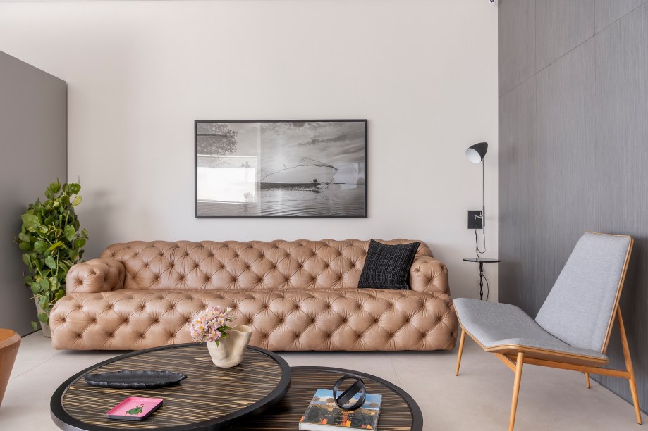“A ideia principal era trazer sofisticação e funcionalidade ao mesmo tempo. O apartamento precisava estar preparado não só para os moradores, mas também para seus filhos e netos. O ponto de partida sugere viver e receber, um refúgio para eles e toda a família”, explica o escritório.