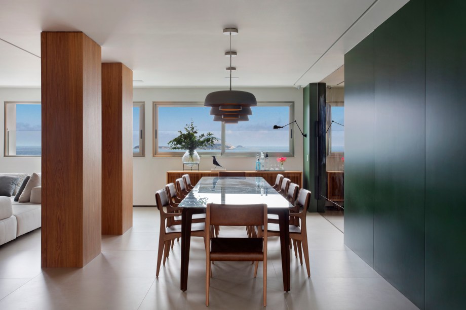 Um casal com duas filhas pequenas comprou esta cobertura linear de 485m², no Leblon, já com a intenção de fazer uma mega intervenção. Os arquitetos Maurício Magarão e Alice Lindenberg, do escritório Magarão + Lindenberg Arquitetura, foram então contratados para refazer toda a distribuição de espaços, com algumas mexidas estruturais (inclusive reposicionando a piscina), para adequar todo o imóvel às necessidades da família.