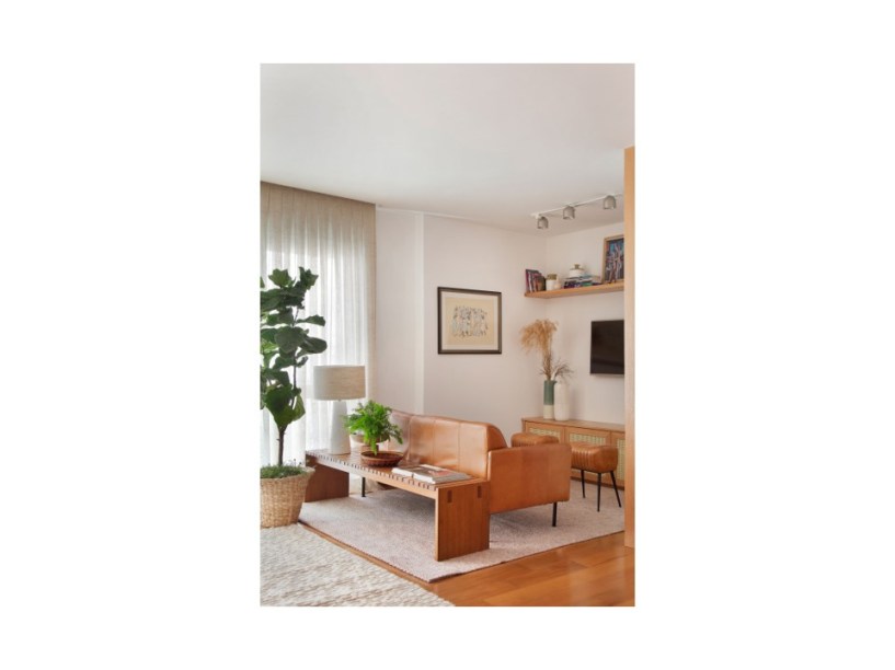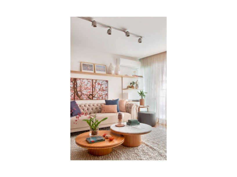 “No geral, a base é neutra, pontuada com cores mais vibrantes nos objetos e no quadro acima do sofá”, conta Ricardo.