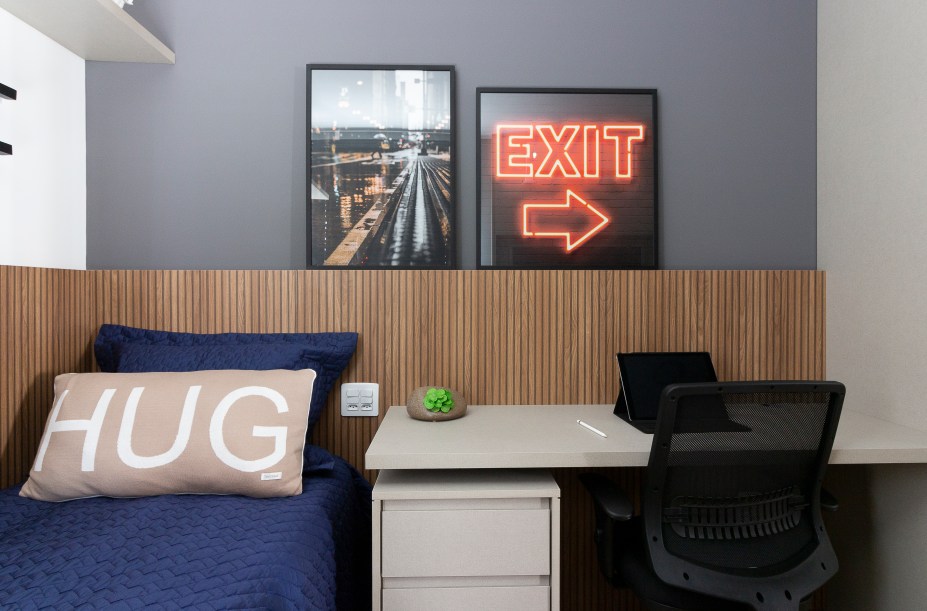 “Os ambientes em comum possuem móveis com integração, em layout totalmente aberto. Para promover a acomodação na churrasqueira, colocamos um banco com a mesma função de um canto alemão“, contam.